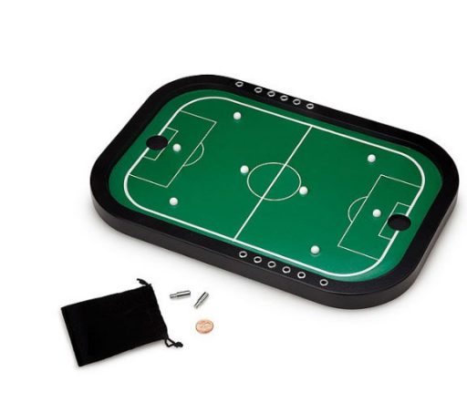 Footie fans of all ages will flip for this fun and fast-paced game of miniature proportions. With your trusty penny “soccer ball” in hand, you can flick your way across the field, deftly navigating past the plug-shaped “players” to shoot your coin straight into the goal. Ca-ching! Give friends and family members a run for their money at your next party and defend your position as penny soccer extraordinaire.