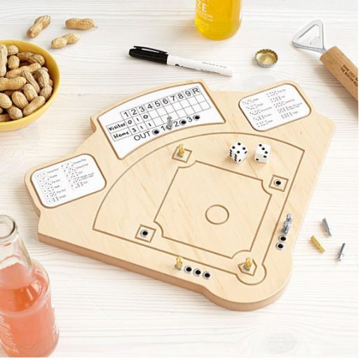 Bring the thrill of America’s favorite pastime home with this old-fashioned game that’ll be a hit with family and friends. To play, move the first batter to home plate and roll the dice. Locate the dice combination on one of the two outfield billboards and move your players accordingly. The dry erase scoreboard allows for speedy changes to team names and scores.